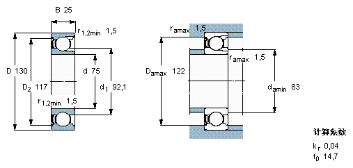 | 1215K | SKF | 75 | 130 | 25 |