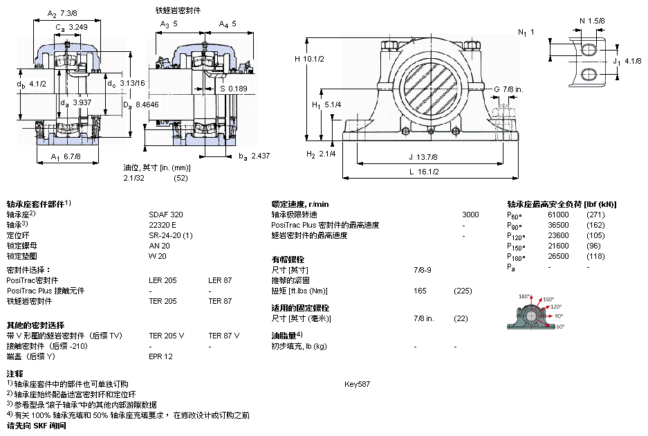 SKF轴承 > SDAF系列对开式轴台箱,用于带圆柱孔轴承 > 22320E