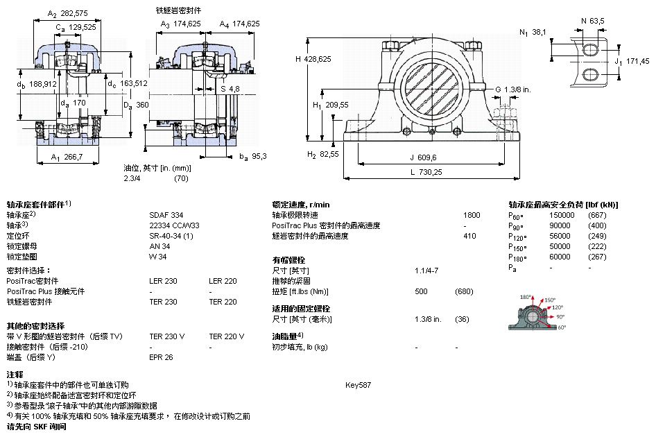 SKF轴承 > SDAF系列对开式轴台箱,用于带圆柱孔轴承 > 22334CC/W33