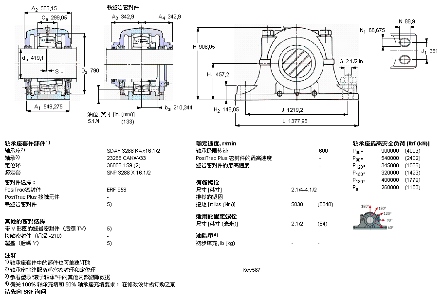 SKF轴承 > SDAF系列剖分式轴承座,用于带紧定套的轴承 > 23288CAK/W33