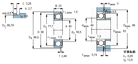 SKF 308-2ZNR尺寸参数