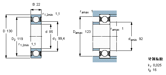 | 6017 | SKF | 85 | 130 | 22 |