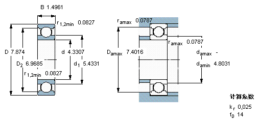 SKF 6222/W64尺寸参数