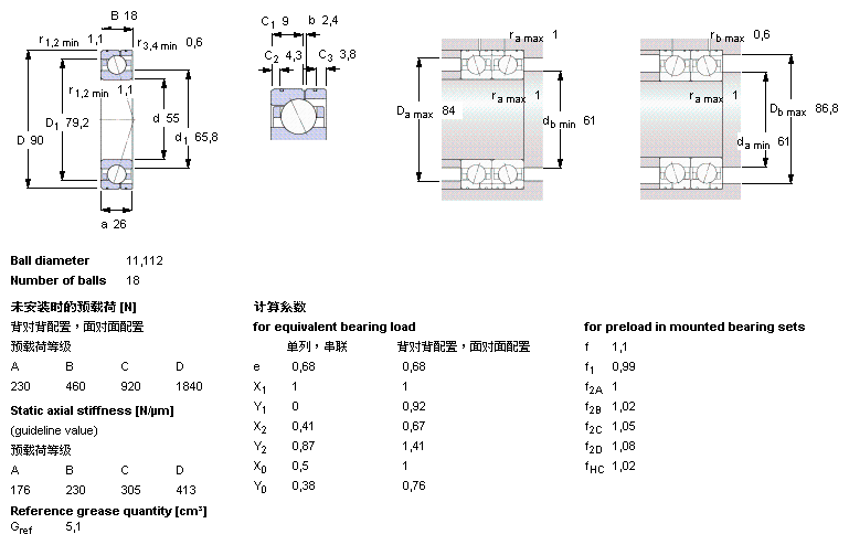 | 7011CB/P4A | SKF | 55 | 90 | 18 |