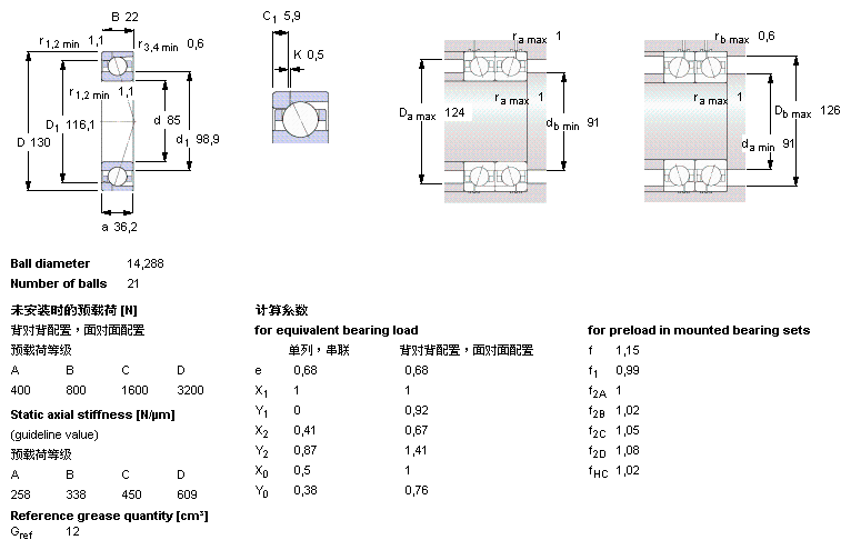 SKF轴承 > SKF高精密和超精密角接触球轴承 > 7017ACD/HCP4AH1