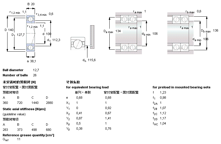 | 71920CB/P4A | SKF | 100 | 140 | 20 |