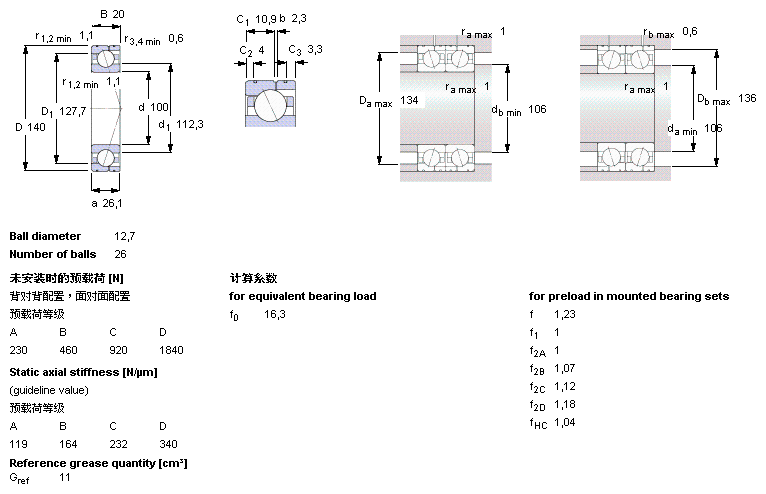 | 71920CB/P4A | SKF | 100 | 140 | 20 |