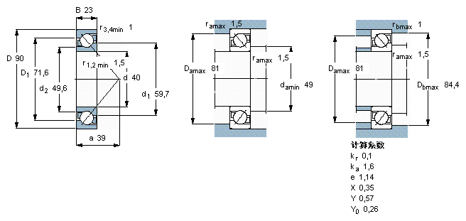 SKF 7308BEP尺寸参数