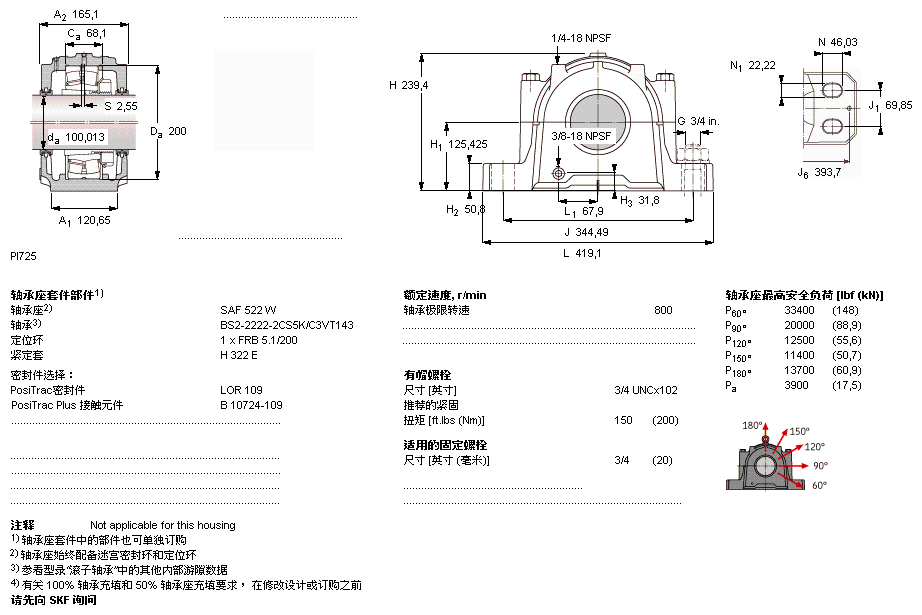 SKF轴承 > SAF系列剖分式轴承座,用于带紧定套的球面滚子轴承 > BS2-2222-2CS5K/VT143