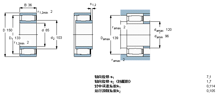 | NJ2217ECM | SKF | 85 | 150 | 36 |