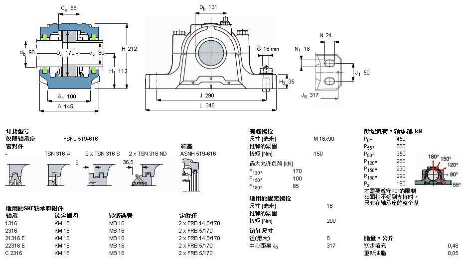 SKF轴承 > SNL系列剖分式轴承座,用于带圆柱孔和标准密封件的轴承 > FSNL519-616