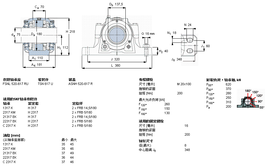 SKF轴承 > SNL系列剖分式轴承座,用于带紧定套和油封的轴承 > FSNL617TURU