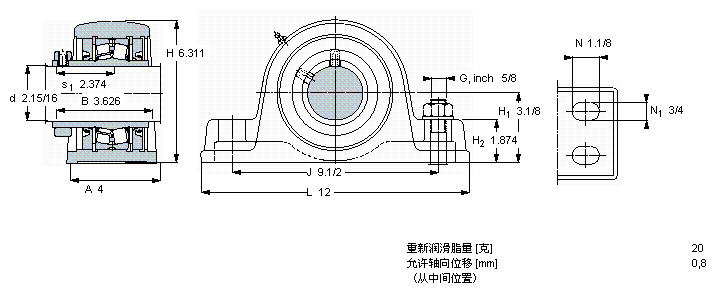 SKF轴承 > 轴台滚子轴承单元,锁定套,用于英制轴 > FSYE2.15/16-3