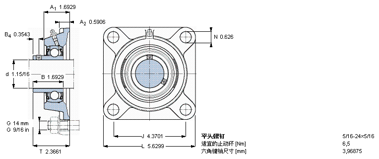 SKF轴承 > 法兰型Y轴承单元,铸造轴承座,方形法兰,平头螺钉锁定 > FY1.15/16RM