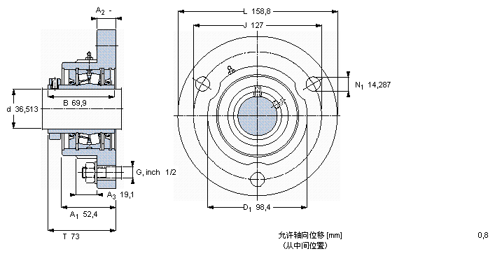 SKF轴承 > 法兰型滚子轴承单元,锁定套,用于英制轴 > FYR1.7/16-3