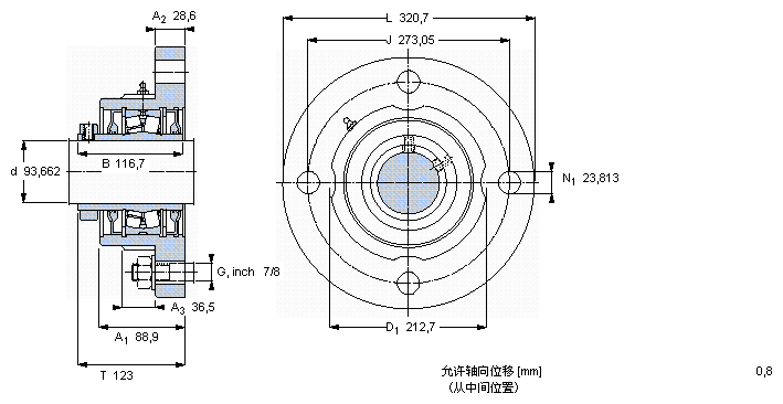 SKF轴承 > 法兰型滚子轴承单元,锁定套,用于英制轴 > FYR3.11/16