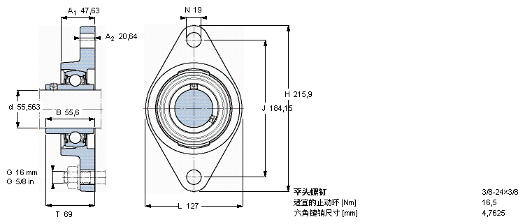 SKF轴承 > 用于高温应用场合的Y轴承单元,法兰型轴承单元,椭圆形法兰 > FYT2.3/16TF/VA228