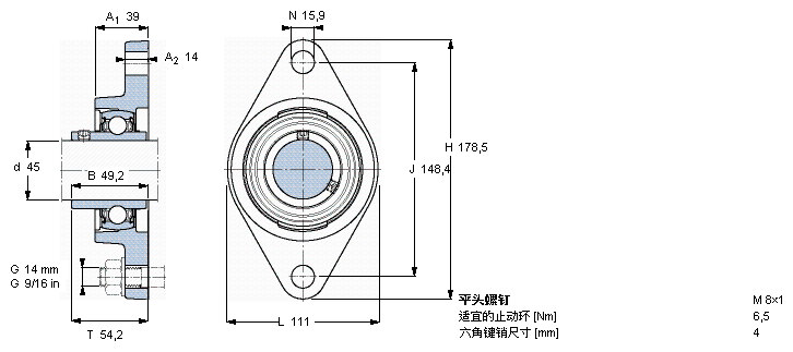 SKF轴承 > 用于高温应用场合的Y轴承单元,法兰型轴承单元,椭圆形法兰 > FYT45TF/VA228