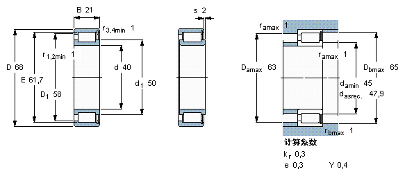 SKF NCF3008CV尺寸参数