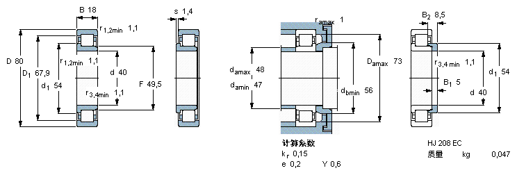| NJ208ECP | SKF | 40 | 80 | 18 |