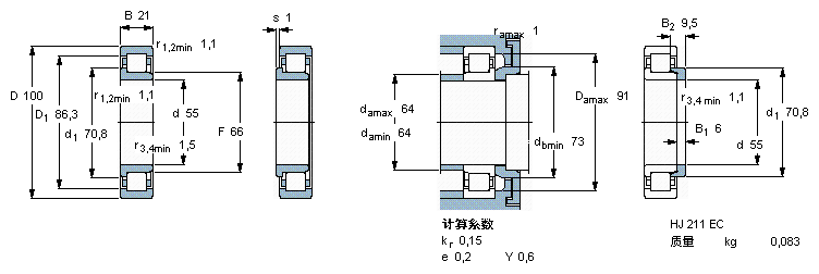 | NJ211ECJ | SKF | 55 | 100 | 21 |