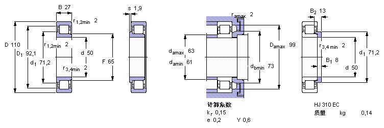 | NJ310ECM | SKF | 50 | 110 | 27 |