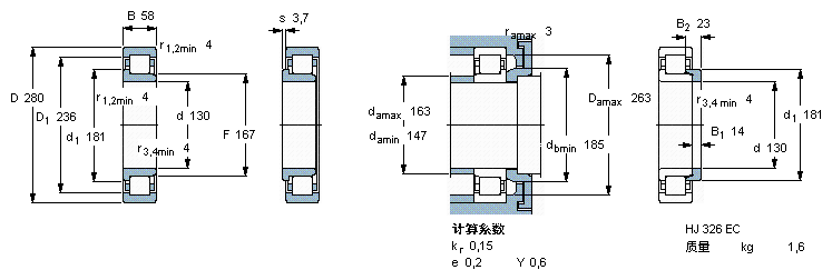 | NJ326ECP | SKF | 130 | 280 | 58 |
