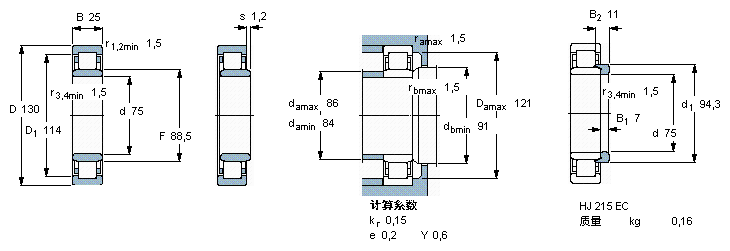 | NJ215ECJ | SKF | 75 | 130 | 25 |