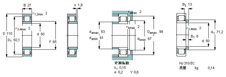 | NJ310ECP | SKF | 50 | 110 | 27 |