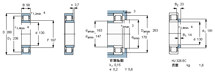 | NJ326ECP | SKF | 130 | 280 | 58 |