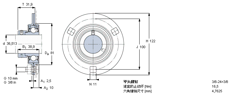 SKF轴承 > 法兰型Y轴承单元,冲压钢轴承座,偏心锁定套 > PF1.7/16FM