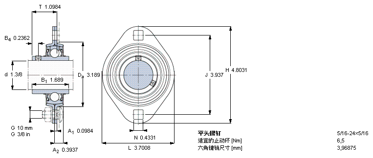 系列:法兰型Y轴承单元,冲压钢轴承座,平头螺钉锁定