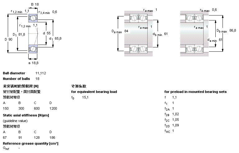 | 7011ACB/P4A | SKF | 55 | 90 | 18 |
