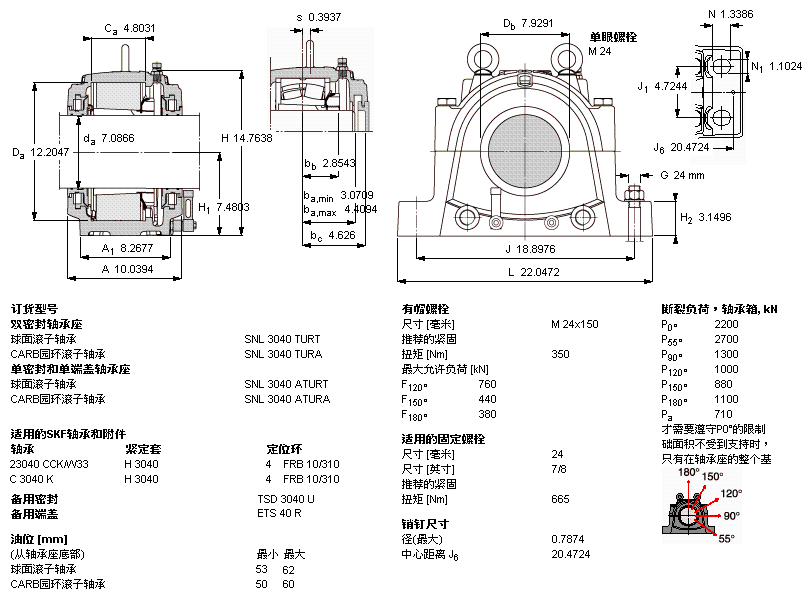 SKF轴承 > SNL系列大型剖分式轴承座,用于带紧定套和油封的轴承 > SNL3040TURT