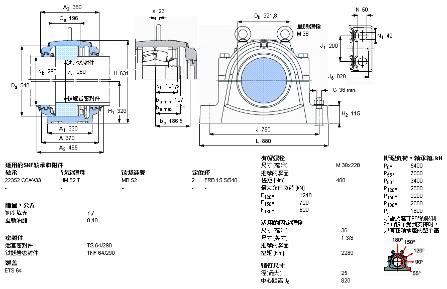 SKF轴承 > SNL系列大型剖分式轴承座,用于带圆柱孔和标准密封件的轴承 > SNl3164