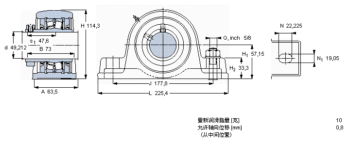SKF轴承 > 轴台滚子轴承单元,锁定套,用于英制轴 > SYE1.15/16-3