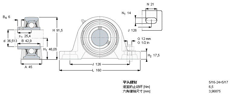 SKF轴承 > 座式Y轴承单元,铸造轴承座,平头螺钉锁定 > SYH1.7/16TF