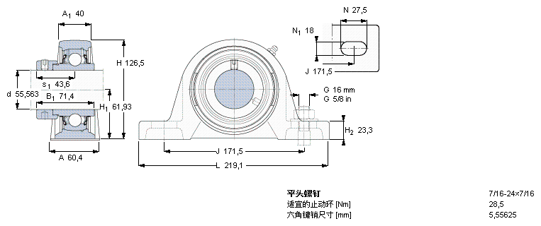 SKF轴承 > 座式Y轴承单元,铸造轴承座,偏心锁定套 > SYH2.3/16WF