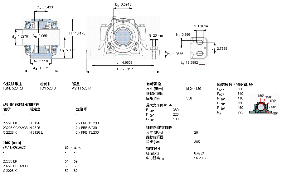 SKF轴承 > SNL系列剖分式轴承座,用于带紧定套和油封的轴承 > FSNL526TURU