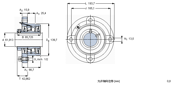SKF轴承 > 法兰型滚子轴承单元,锁定套和套栓,用于英制轴 > FYRP2.7/16-18